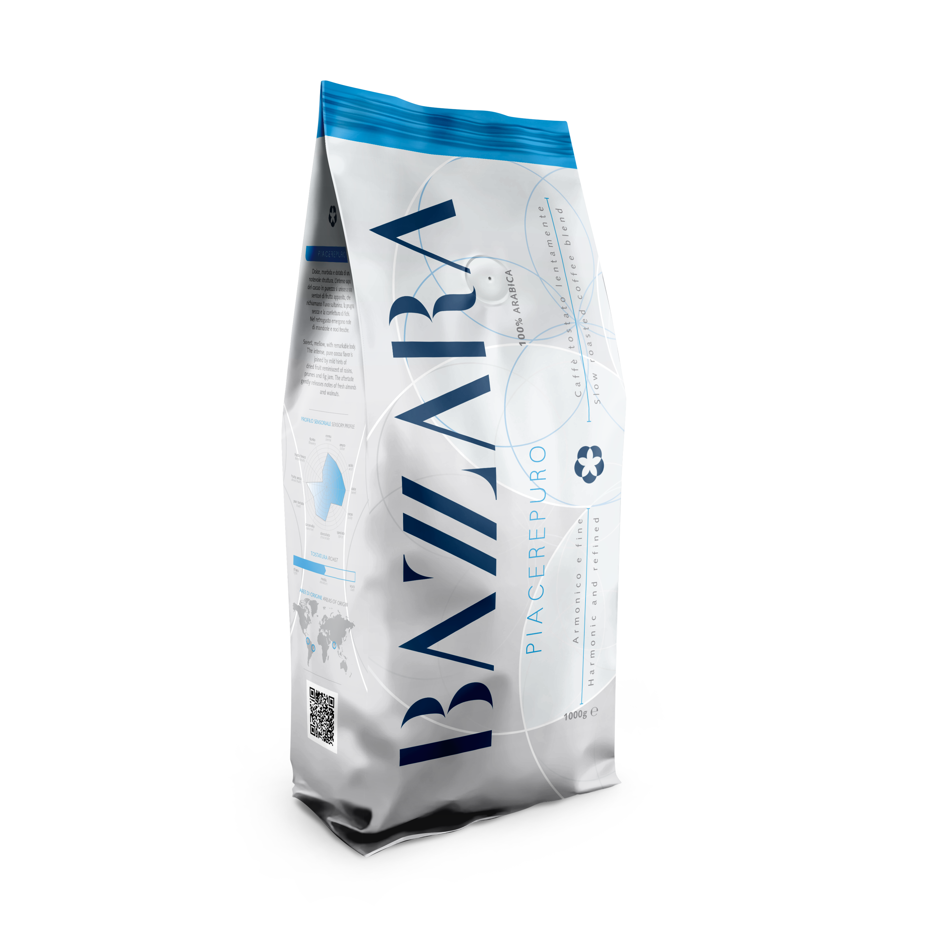 Le Bazzara Piacerepuro est un café servi dans les bars et restaurants les plus raffinés d'Italie. Située à Trieste, la maison Bazzara torréfie ce Piacerepuro lentement et moyennement. Ce mélange doux et onctueux offre une belle rondeur en bouche. Cette rondeur provient principalement d'une saveur dominante de chocolat noir, accompagnée de subtiles notes de fruits secs comme les raisins secs, les figues et les pruneaux. Le Piacerepuro se distingue par sa finale veloutée aux arômes d'amandes et de noix fraîches. C'est le mélange idéal pour les amateurs d'espresso ou de lungo les plus exigeants.
